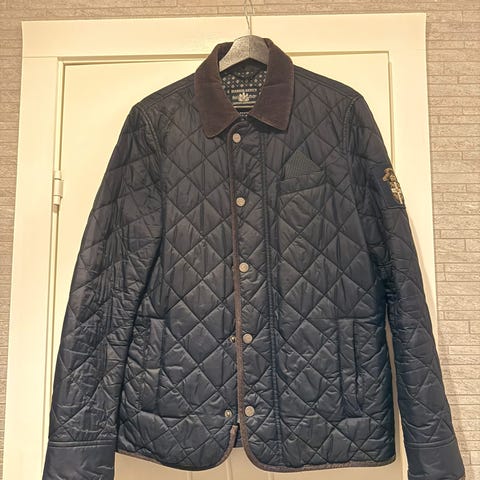 Ralph Lauren Jakke i størrelse L (18-20) for menn. Jakken er svart, quiltet med rutemønster, og har detaljer i kordfløyel på krage og skulder. Den har knappelukking foran og lommer med klaff. Egnet for utendørs bruk. Den har et par hvite merker men det går trolig bort med en fuktig klut.