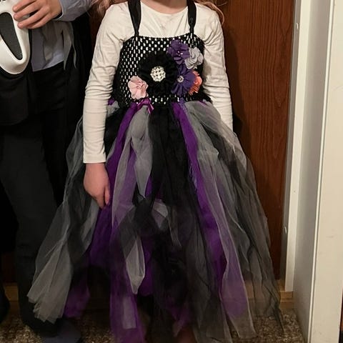 - rød topp + bukse. Tekst:/ trykk: devil. Kr 50,-Halloweenkostyme som kan passe jente 8-10 år. Solgt