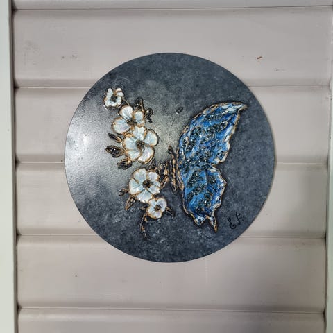 "Blå Metamorfose" Akryl og skulptur art av kunstnee