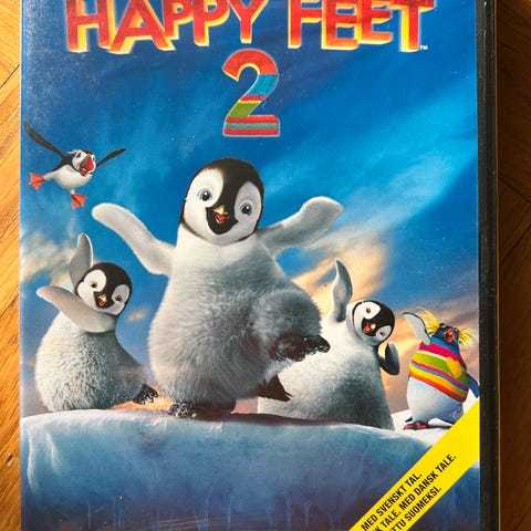 Happy Feet 2 DVD med animasjonsfilm for barn. Inneholder filmen Happy Feet 2, som følger eventyrene til pingviner i Antarktis. Passer for alle aldre.