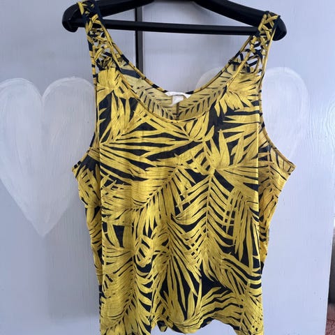 Topp / Signlett fra Selected i svart stoff med shiny gullaktig mønster. Størrelse S (38).