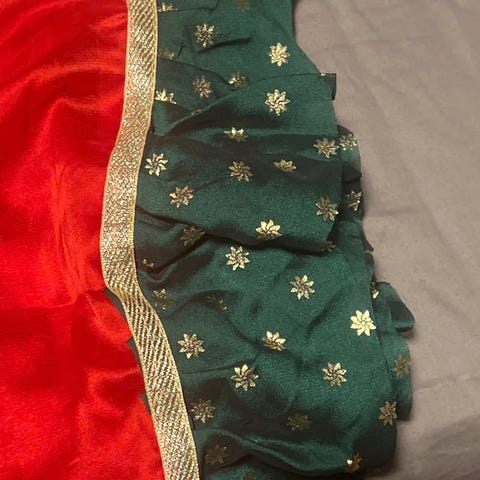 Vi selger de flotte indiske khantaene som vi ikke fikk brukt i bryllupet vårt, så disse er helt nye og ubrukte. De er tosidige, så andre mønster og farger på baksiden. Stykkpris 700kr. Kan sendes.