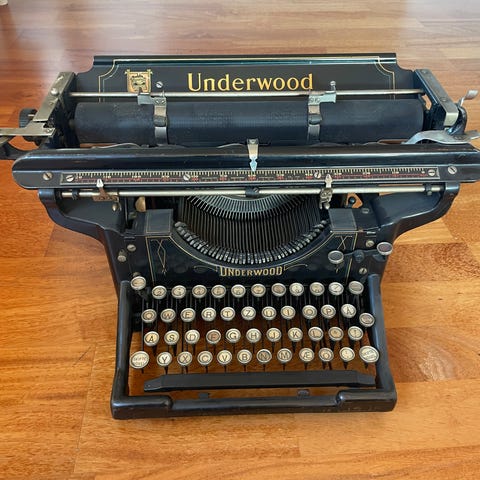 Underwood Standard Typewriter No 5 er en mekanisk skrivemaskin i svart metall. Den har runde taster med hvite bokstaver og tall, og en standard layout for effektiv skriving. Skrivemaskinen er designet for manuell bruk og egnet for kontor- eller hjemmebruk som et verktøy for tekstproduksjon.