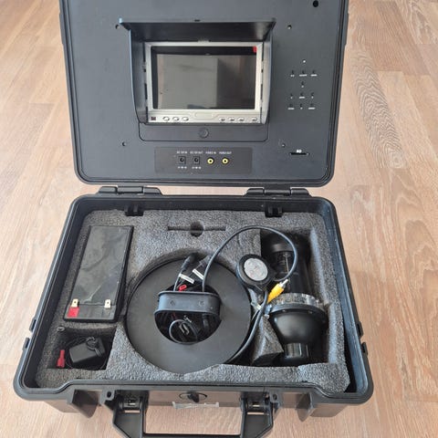 Så godt som nytt undervanns videokamera selges. Operasjonsdybde ned til 30 m. Opptakene lagres på minnekort. Selges da jeg nå har kjøpt ROV. Ikke brukt i vann/sjø. Lader følger med. Nytt kostet kamera i overkant av kr 3000,-