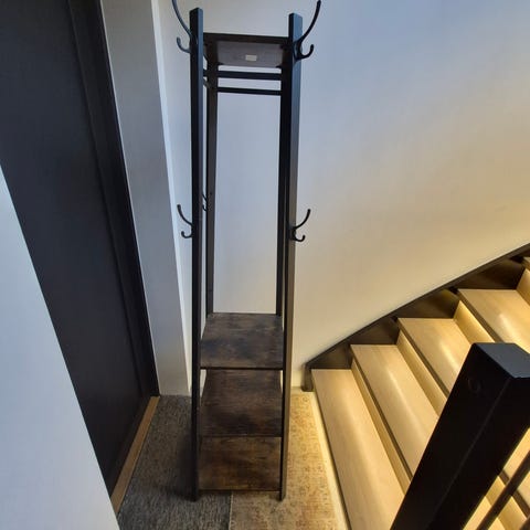 Brun/svart stumtjener med 4 hyller, 4 klesstenger og 8 doble kroker
