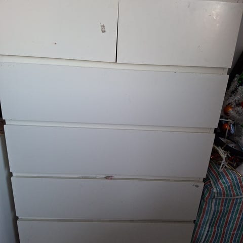 En litt eldre utgave av SMÅSTAD Benk med lekeoppbevaring, hvit/hvit, ca mål 90x52x48 cm. Min har to håndtak på skuffe, se bilde.
