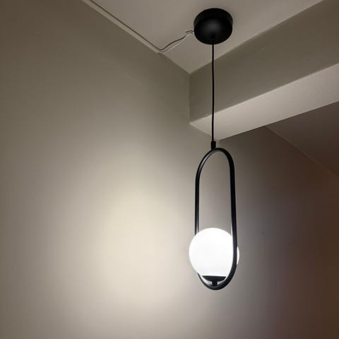 Denne lampen er like stilig å henge alene i et hjørne, som å henge over spisebordet eller trappegangen.