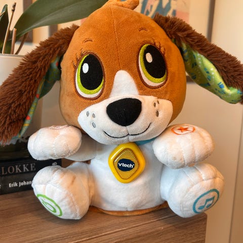 Syngende bamse- med flere funksjoner (synger, spør spr etc) på engelsk.