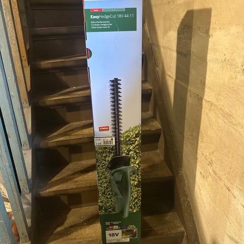 Pent brukt hekksaks kjøpt for to år siden. Har blitt smurt før hver bruk med bosch sin saks/kjedespray. Lagret tørt i oppvarmet bod mellom hver bruk. Godt egnet til beskjæring av trær og busker i tillegg til vanlig hekk. Effektiv automatisk revers som kaster ut kvister som den ikke klarer å kappe. Har vært veldig fornøyd med denne, men må dessverre selge på grunn av flytting.
