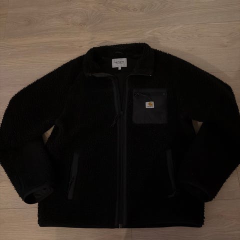 Carhartt Jakke i beige farge, størrelse L for menn. Jakken er designet for utendørs bruk og har en enkel, klassisk stil. Materialet og konstruksjonen er egnet for daglig bruk.
