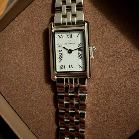 Klassisk dameklokke fra Mockberg: "Timeless" med brun skinnreim.