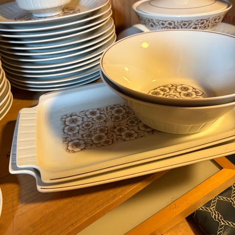 Rotunda er et servise fra 1980 tallet. Delene er fine bortsett fra to av suppeskålene som har et nag under kanten. Selges enkeltvis eller samlet.
