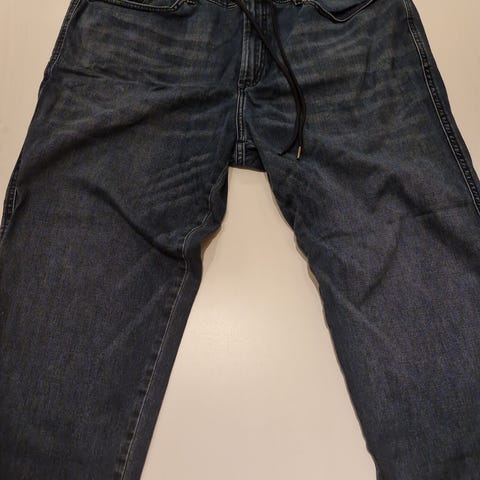 Fra hofte til hofte, ca 47 cm. 2 av buksene har stretch i linningen bak, så de kan bli litt bredere.