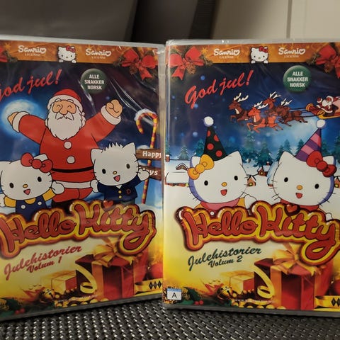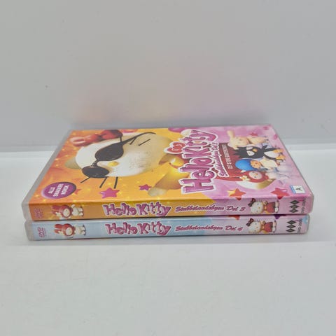 Tre dvd med episoder fra Hello Kitty serien Stubbelandsbyen, samt en dvd med andre Hello Kitty historier.
