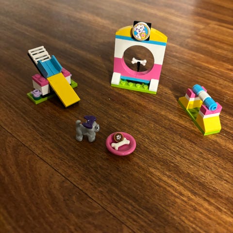 Mangler én del en gul brikke til avslutningen på sklien. Se bildene.