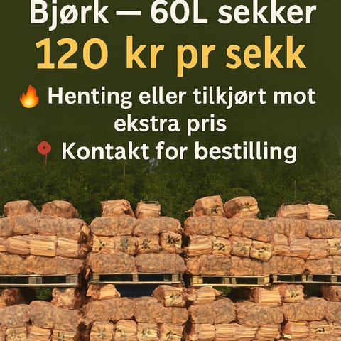 Tørr og fin bl. ved i 60 ltr sekker til salgs.