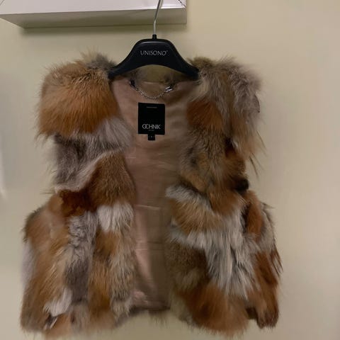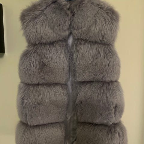 Vest i størrelse one size. Vesten har pelsdetaljer rundt kragen og ermene, og er laget av revepels. Passer til kvinner.