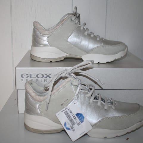 Geox skinnsko i størrelse 36, med og blå farge. Skoene er kjøpt i Barcelona, pris kr 1800. Kun brukt få ganger.