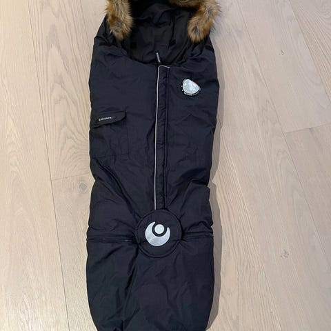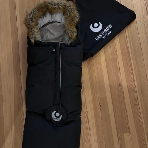 Vognpose fra Easy Grow Nord. Sort. Varm og god for vintermånedene. Forlengbar del forlenger vognposen fra 92 cm til 120 cm. Deilig myk økologisk bomull på innsiden, som puster. Vaskbar ull i rygg. Dun/fjær 90%/10%. Ingen bruksmerker. Ser ny ut.