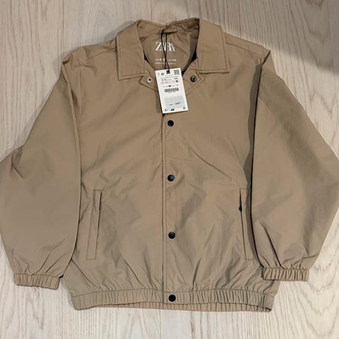 Som ny! Zara workerjakke i vasket twill - beige - str. 140 / 9-10 år