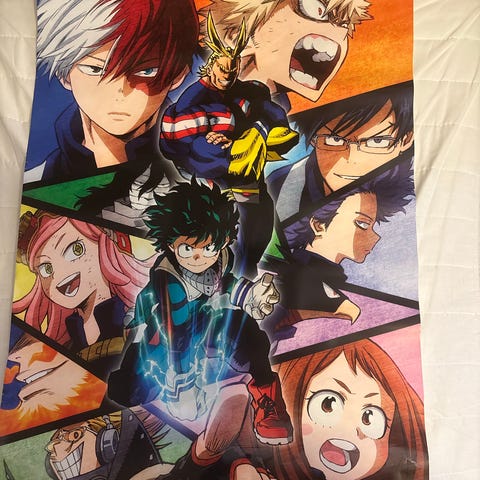 Metallprint av All Might fra My Hero Academia i dynamisk blått design.