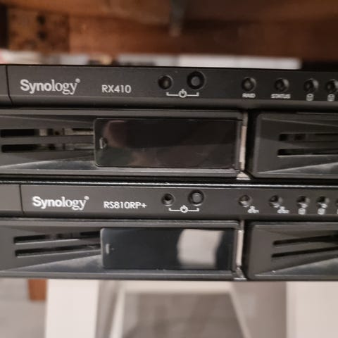 Synology DiskStation NAS-enhet i svart farge. Enheten er beregnet for lagring og deling av data i nettverk. Inkluderer ikke-orginal strømadapter. Passer for hjemme- og kontorbruk for sikker og sentralisert datalagring. Ingen disker i den.