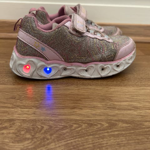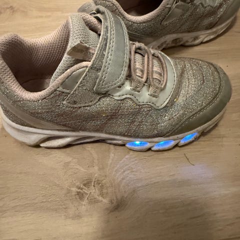 Pent brukte Ponny blinke sko. Kjøpt nye av oss i våres. Kunn litt slitt i overgangen mellom glitteret og rosa fargen.