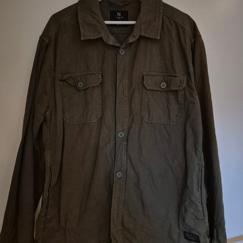 Helt ny ubrukt skjorte med bryst lommer størrelse liten large. Skulder bredde 44cm bryst 104cm rundmål arm lengde fra skulder 58cm lengde 70cm 350kr inkludert frakt
