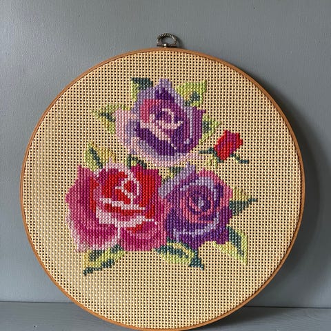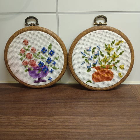 Kjempefine gamle broderte bilder i ramme og oppheng.Pent bevart,selges samlet