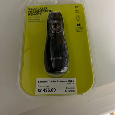 Selger pent brukt Logitech Wireless Presenter R400 fjernkontroll med bl.a laserpeker.