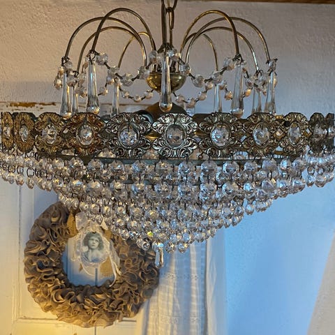 Lekker lysekrone selges. Den har kun vært hengt opp for å se om den passet, men den ble dessverre for stor.