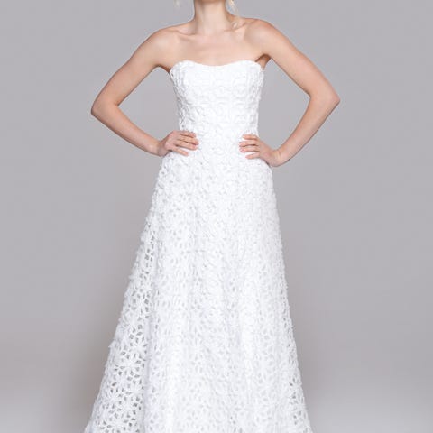 Elegant og luksuriøs brudekjole - modellen FARGO med drapert stroppeløs overdel og stort volumøst skjørt med splitt fra SADONI bridal - helt ny! Kjolen har et lite 30 cm slep som passer perfekt for den moderne bruden. Ny pris 23 800,-