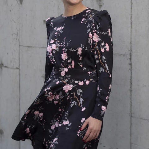 Nøkkelfunksjoner: Svart | Flerfarget | 98% Viskose, 2% Lurex | Lange ermer | Knappelukking foran | A-linje silhuett | Volangkant | Dimensjoner og passform: Normal passform | Sammensetning og pleie: 98% Viskose | 2% Lurex | Renseri anbefales