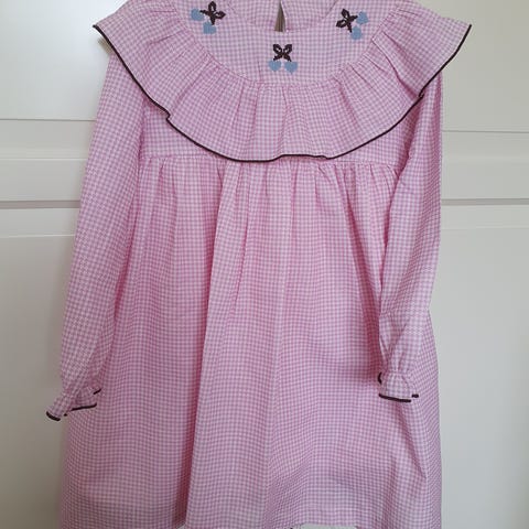 Vakker og velhold kjole i størrelse 116, perfekt til bursdager, høytider eller som hverdagskjole. Kjolen er av tysk kvalitet, med flotte detajer og behagelig passform. Farge