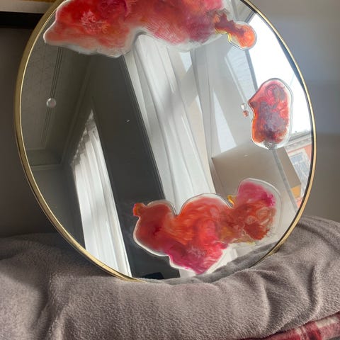 Skulpturelt speil fra &Klevering i blått. Den organiske, teksturerte rammen skaper et unikt uttrykk uten å ta for mye plass. Passer fint i gang, stue, soverom eller bad - et lite designobjekt som gir rommet personlighet✨