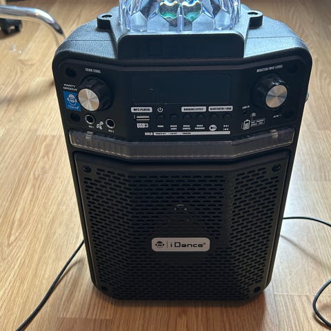 Denver Partyfun høyttaler med integrert kontrollpanel for volum, bass og mikrofonvolum. Leveres med mikrofon og trådløs funksjon. Passer til ulike arrangementer og bruk i hjemmet eller på farten.