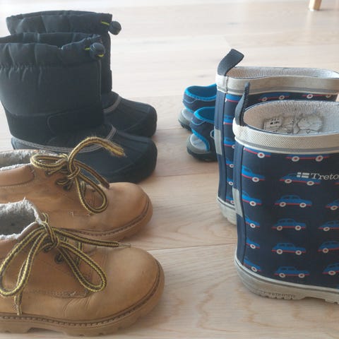 Gummien er litt løs oppe på tåa på begge,kan sikkert limes. Ellers i ok stand.