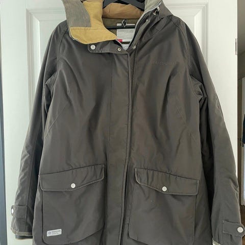 Mosegrønn Didriksons jakke i størrelse XL. Jakken er laget av 100 % vanntett materiale, egnet for utendørs bruk i våte forhold. Den har glidelåslommer, hette. Varm og god!