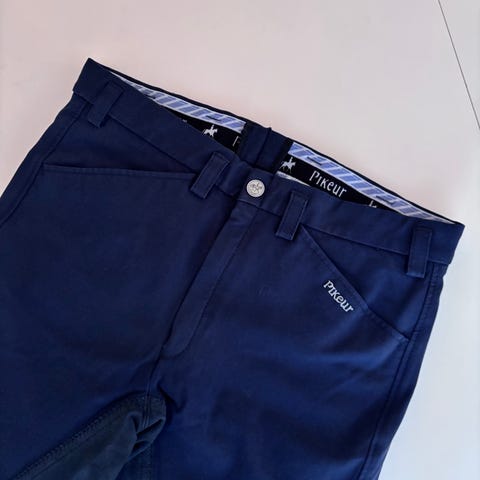 Mørk brun farge. Fra Horze, bomullsmix med stretch. Brukt men ingen skader.