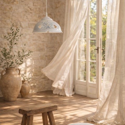To nydelig taklamper i retro stil, laget i keramisk med et sjarmerende og tidløst uttrykk. Disse passer perfekt til deg som ønsker å tilføre personlighet og varme til hjemmet - enten der er kjøkken , stue eller entre. Ledning må fikses. Kan sendes med Postnord men kjøper betaler frakt. Ferdig prutet.