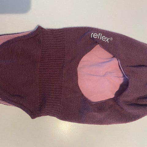 Lilla balaklava med grå kant rundt ansiktet. God stretch. Str. 90, 2 år. Merket 80/90 inni. Helt ubrukt. 70 % merinoull, 28 % polyamid og 2 % lycra. Hurtigtørkende materiale. Perfekt til utelek høst, vinter og vår. 🥰 🥳