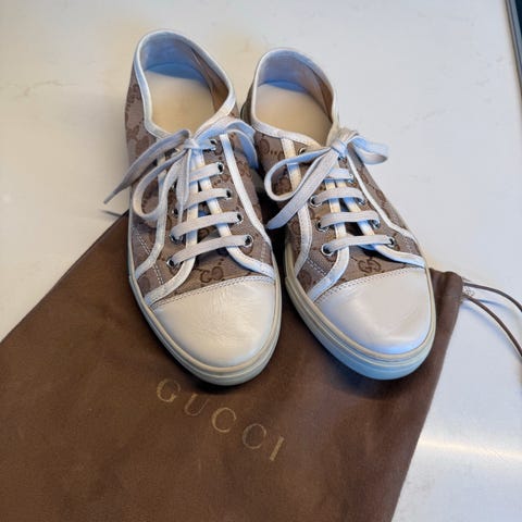 Pent brukte Gucci sneakers. Kjøpt av meg i Firenze. De er i størrelse 37, men jeg vil si de tilsvarer 38.