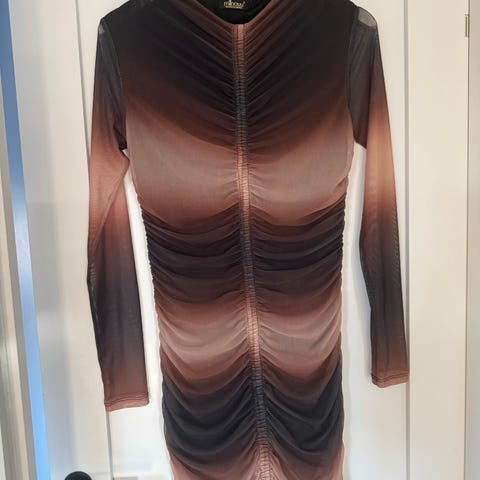 Klassisk kjole i tynn strikk. Hel lengde ca.105 cm.
