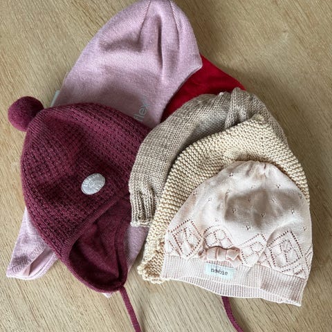 Selger disse 3 luene. I kløfri ull. Mørkeblå brukt her fra ca nyfødt(litt stor ;) til 3 mnd. turkis fra ca 2-4 mnd og lilla fra 2 til 5 mnd.