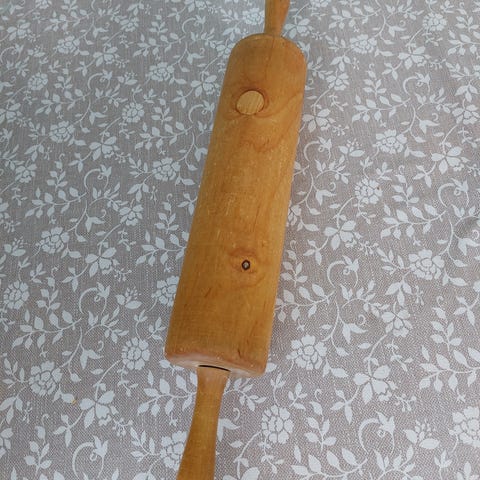 Kjevle to stikker den store lengde 31cm diameter 21cm, den midre lengde 24,5cm,diameter 21,5 cm.200 kr pr stk.