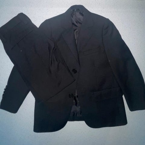 Cubus dressbukse og dressjakke i blå farge, størrelse 92 for gutt. Dressjakken har knappelukking foran og lommer, dressbuksen har beltehemper og lommer. Passer til formelle anledninger eller pent bruk.