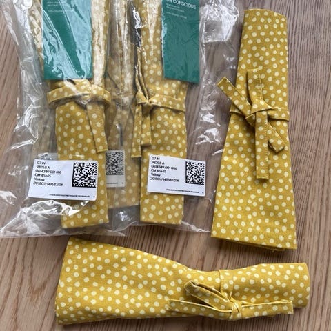 Selger også blå kubbelys og blomsterdekorasjoner i egne annonser.
