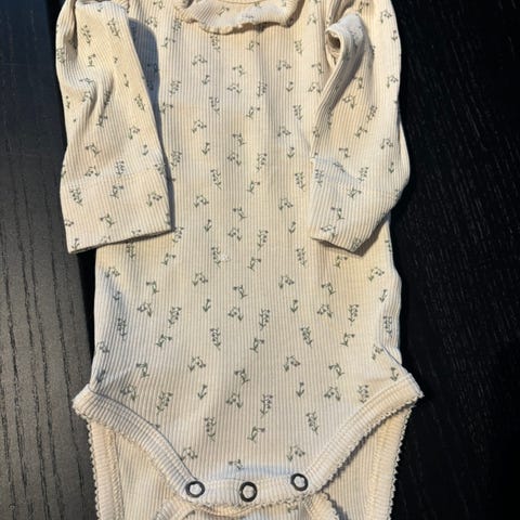 Ny Lil'Atelier Body med riller i størrelse 56, grå farge. Myk og strechy stoff i økologisk bomull og tencel.