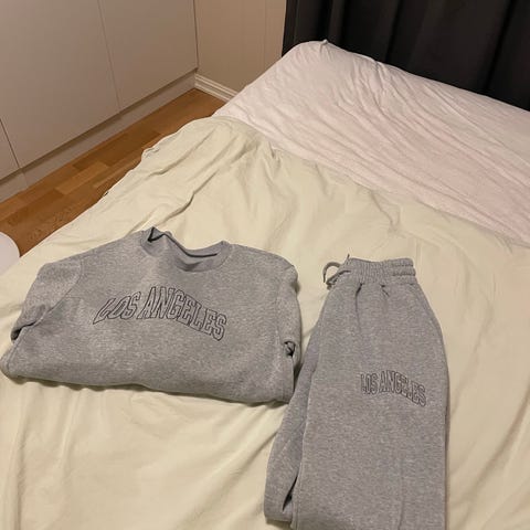 Genser: størrelse S, bukse: størrelse XS.