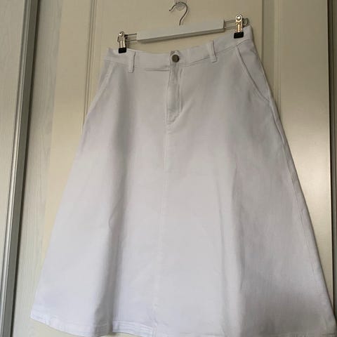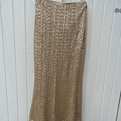 Nøyere mål , spør . Ser ubrukt ut . Flott skjørt , med små gullpaljetter . Se bilder . Ukjent alder